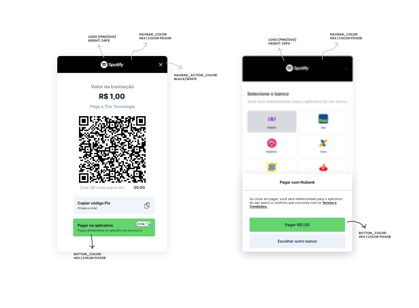 You can also customize your end-user experience by utilizing the Checkout as a white label. You can do so by utilizing the options field, with the respective xxxx_color fields. Below, you can see an example of a wholly implemented customization: